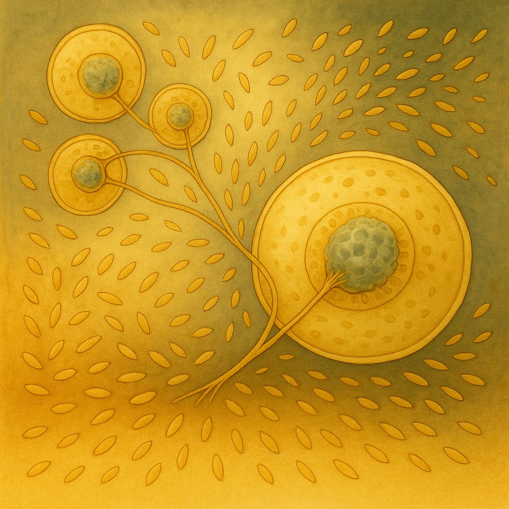 Read within the somatid framework, Bastian’s “elementary granules” correspond to what later investigators would call microzymas, protits, or somatids—the basal particles of life capable of unfolding into microbial forms. His work showed that these transformations were terrain-dependent: richer substrates and acidic conditions accelerated the development of higher bacterial and fungal-like forms, while balanced conditions maintained the granules in a quiescent state. Bastian therefore provided the first systematic evidence that life’s foundation is mutable, responsive, and deeply tied to the surrounding terrain—principles that later researchers refined into explicit maps of the pleomorphic cycle and linked directly to cancer biology.