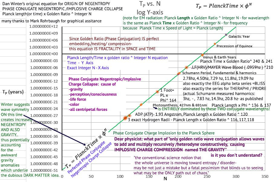Winter’s golden-ratio cosmology is a numerological fantasia: mixing dimensionless constants with dimensional Planck units, claiming that φ-scaling sets the structure of matter and consciousness. His talk of “phase-conjugate charge implosion” creating gravity is metaphor without equations; his derivations, when examined, collapse under dimensional analysis and energy-density requirements.