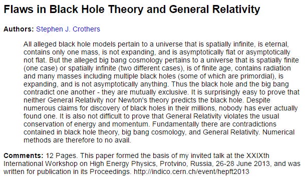 Both men cloak their theories in the symbols of mainstream physics—the Schwarzschild radius, Planck units, quantum gravity—but neither engages with the actual observational ferment and mathematical rigor unfolding in the work of Arp, Robitaille, Thornhill, Peratt, and Crothers. They leap over the real intellectual battlefields—readily available to any functional intellect surveying the field of knowledge—to erect private cosmological kingdoms, built not on evidence but on ego and metaphor mistaken for mechanism.